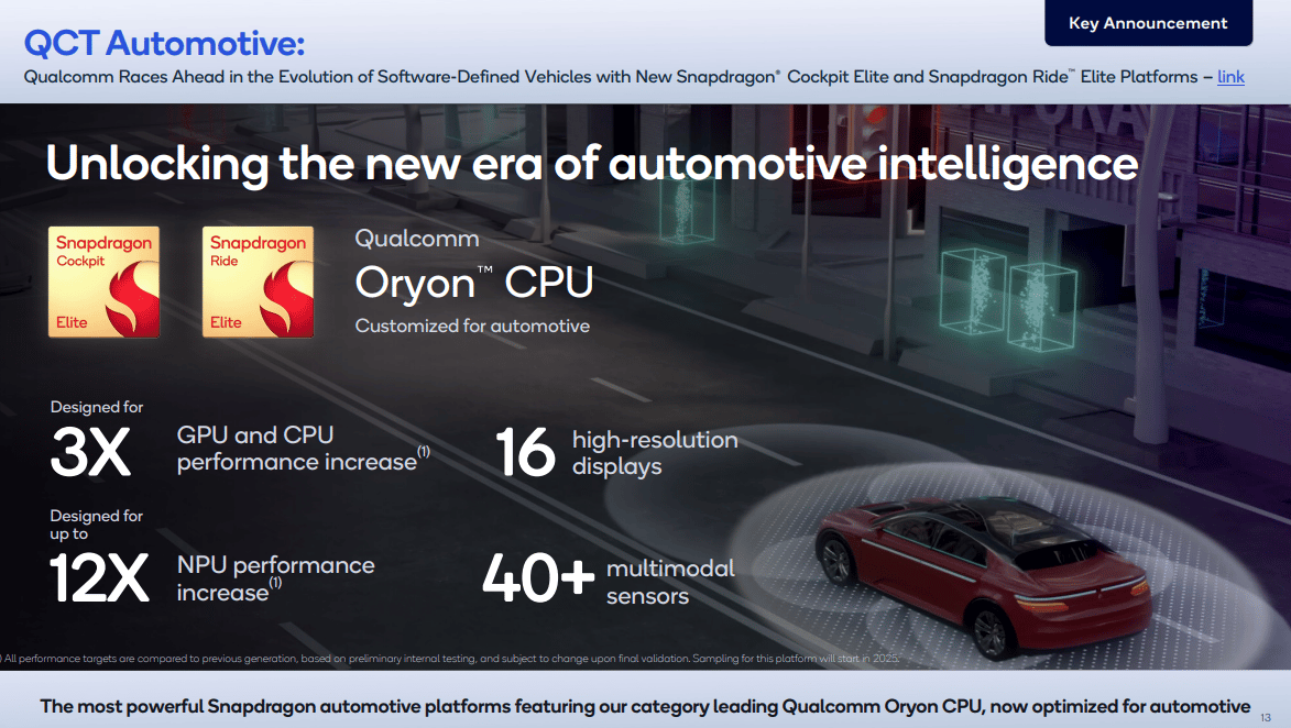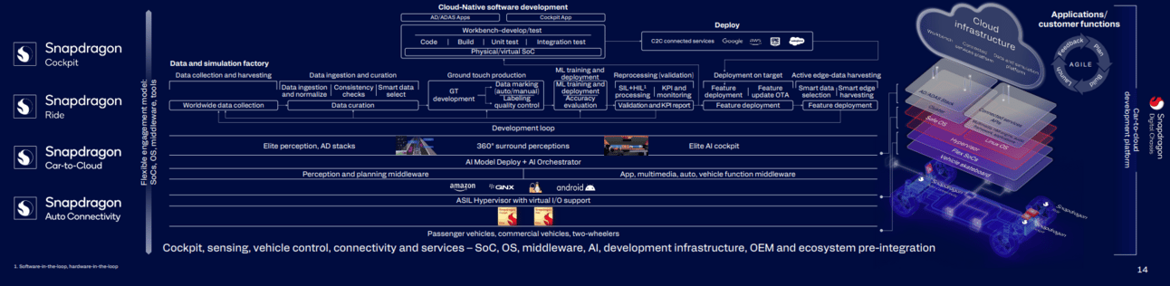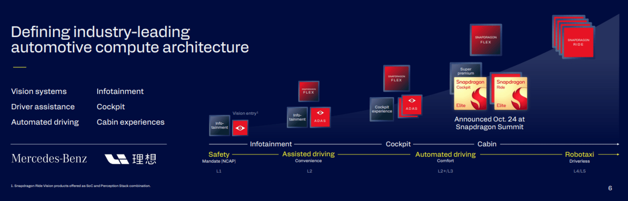 In spite of that I predict Qualcomm is about to enter a major bull run within the automotive vertical. This run is primarily driven by their Ride platform. SoC that can be used across different ECUs in a vehicle.