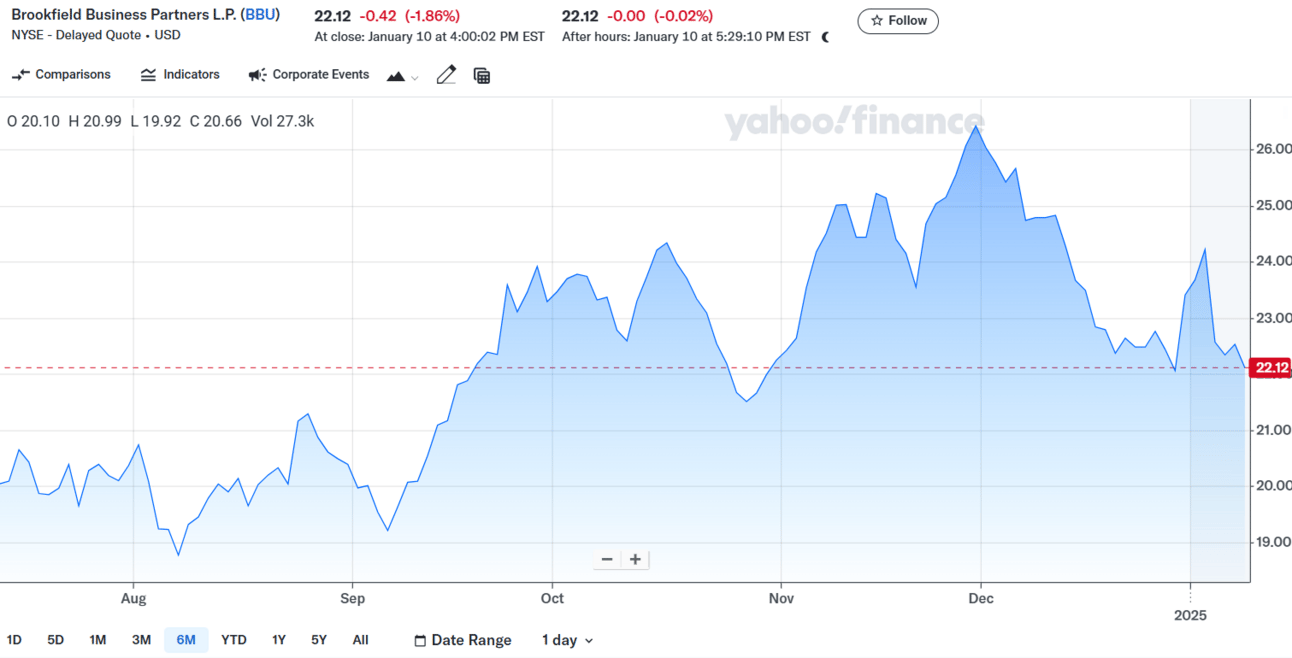 6M Stock performance of Brookefield Business Partners(Clarios’ parent company)
