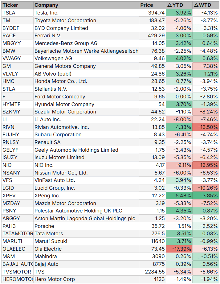 This week’s key movers in the automotive stock market