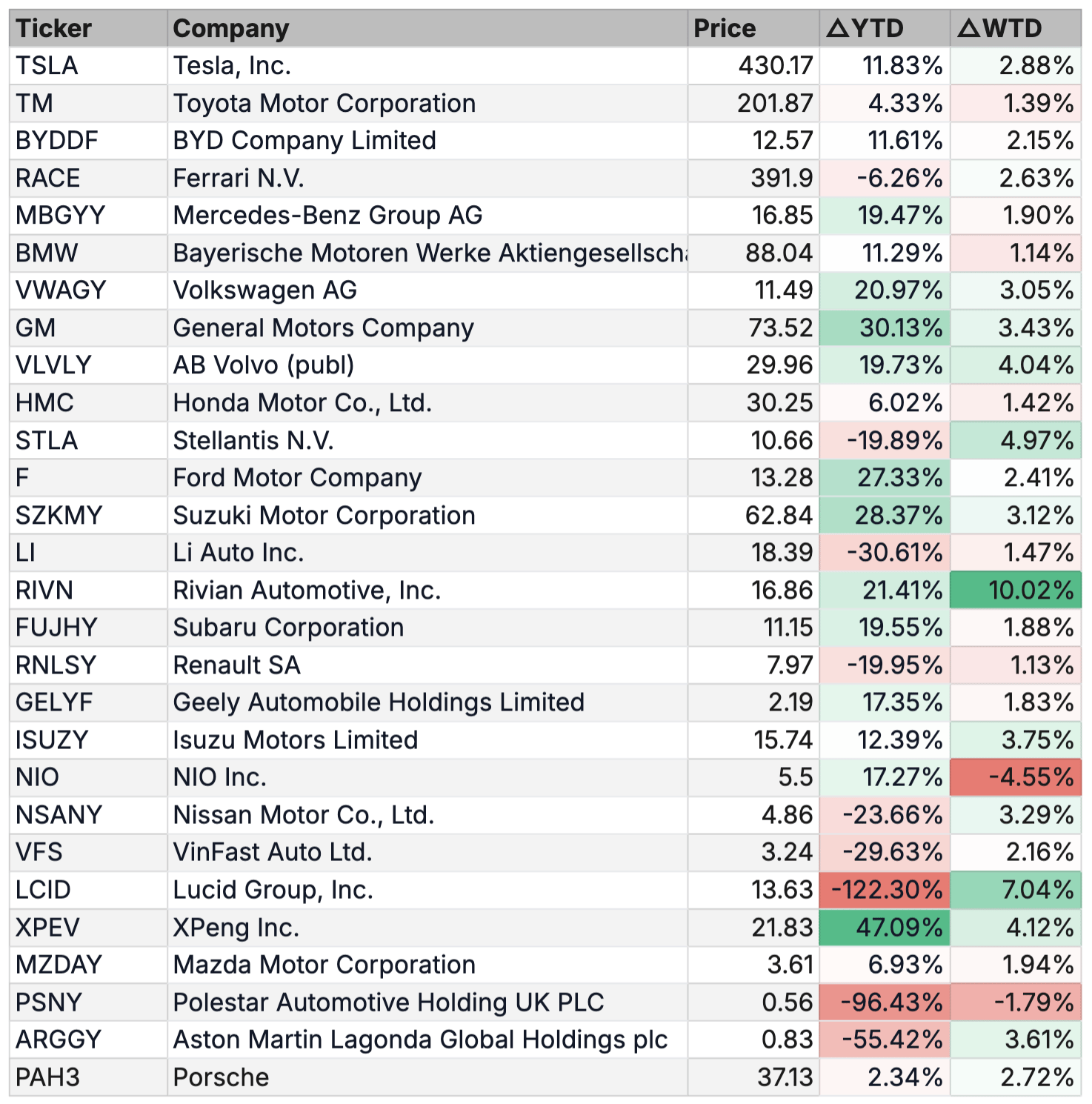 This week’s key movers in the automotive stock market