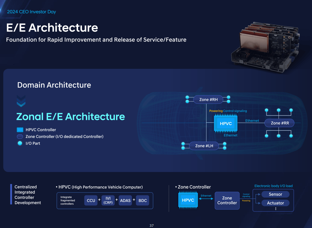 In E/E Architecture, they are moving towards a consolidated architecture with zonal ECUs. For the IVI they are planning to use Android OS.