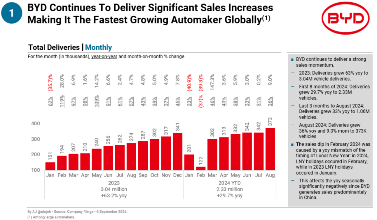 Economies of scale: BYD enjoys a large market share in China and in most other markets. This creates a virtuous cycle that they enjoy compared to other EV manufacturers.