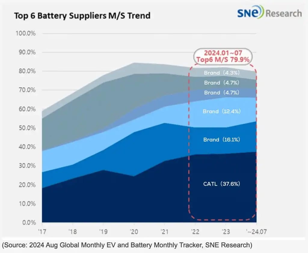 CATL’s market dominance is evident, holding a 37.8% share of the global EV battery market in the first half of 2024.