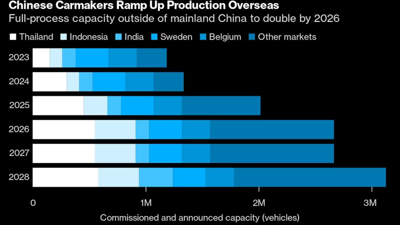 As of 2023, Chinese automakers had a full-process manufacturing capacity of 1.2 million vehicles across nine countries. This is expected to more than double to 2.7 million by 2026, covering over a dozen countries.